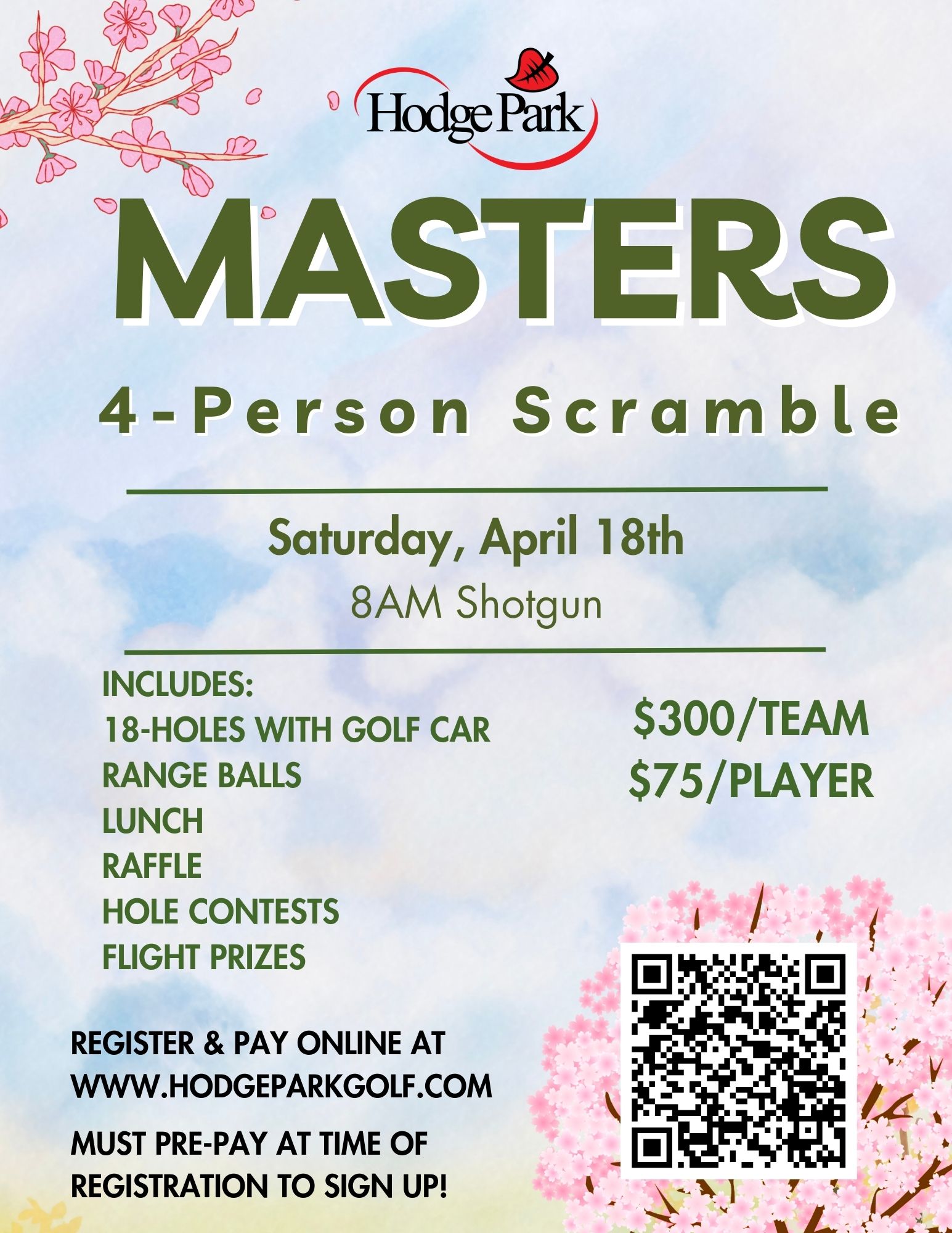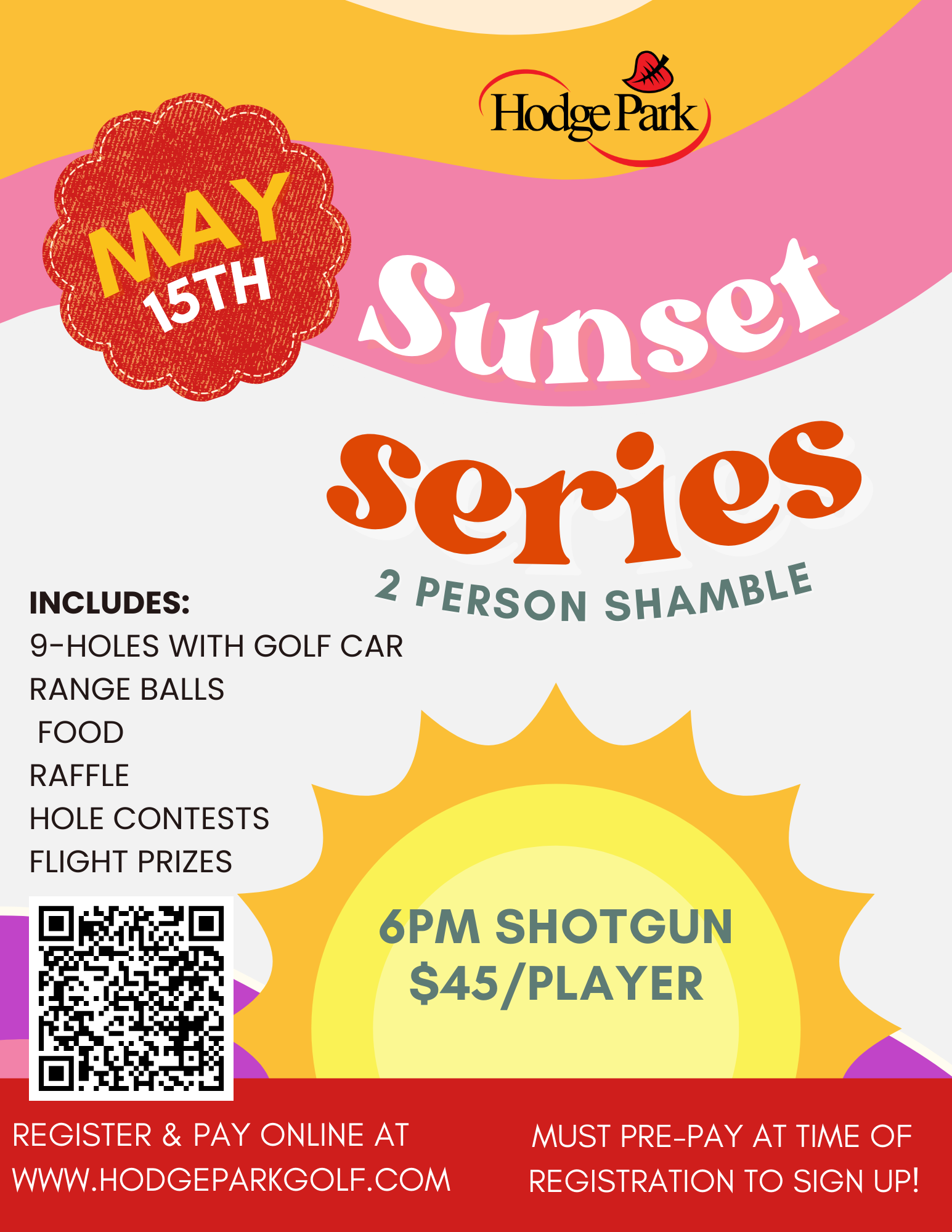 Registration opens on April 3rd! 6 PM start. Includes 9 holes with golf car, range balls, food, raffle, hole contests, & flight prizes.