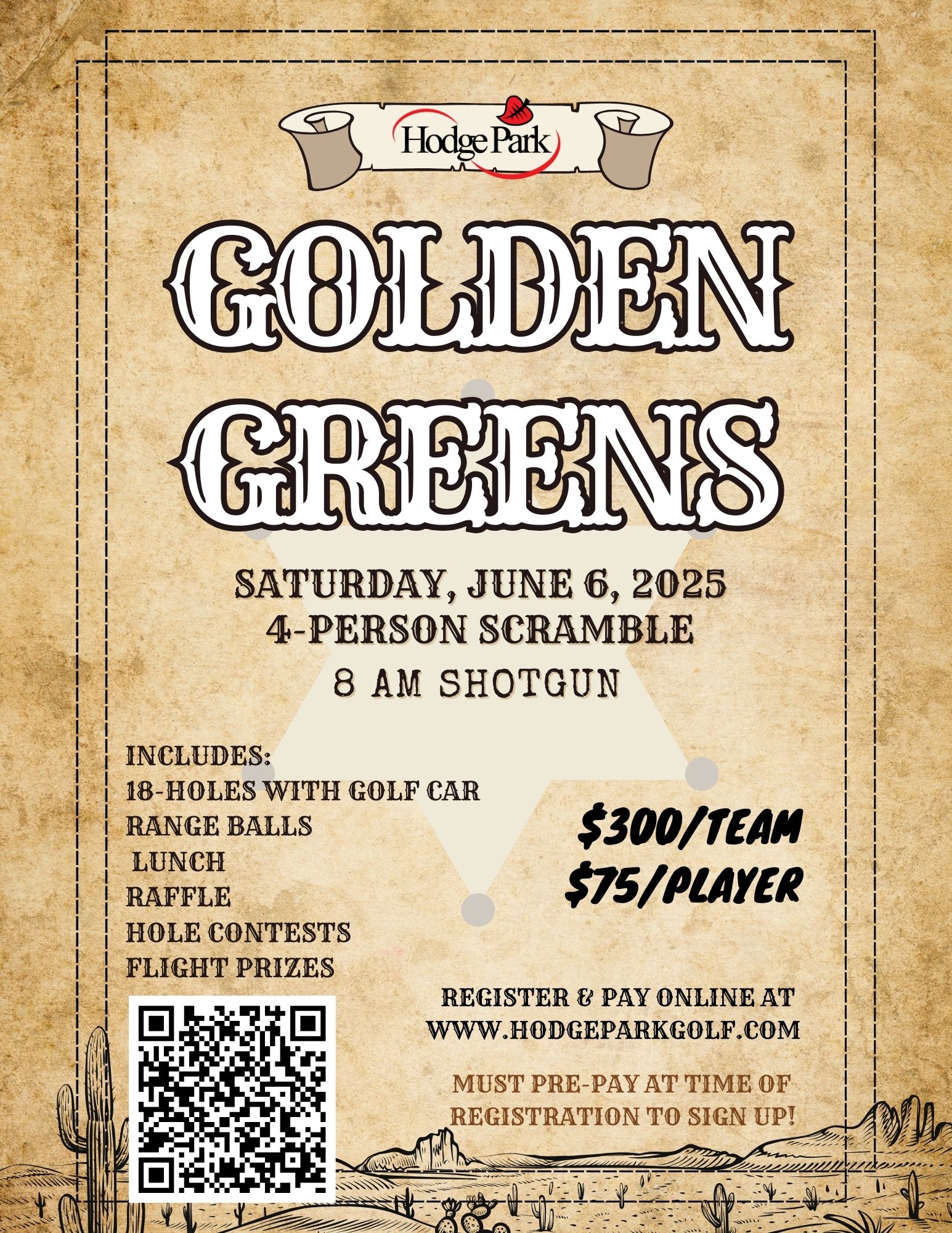Join us for our new, Golden Greens 4-Person Scramble! Wild West themed, 8 AM Shotgun.